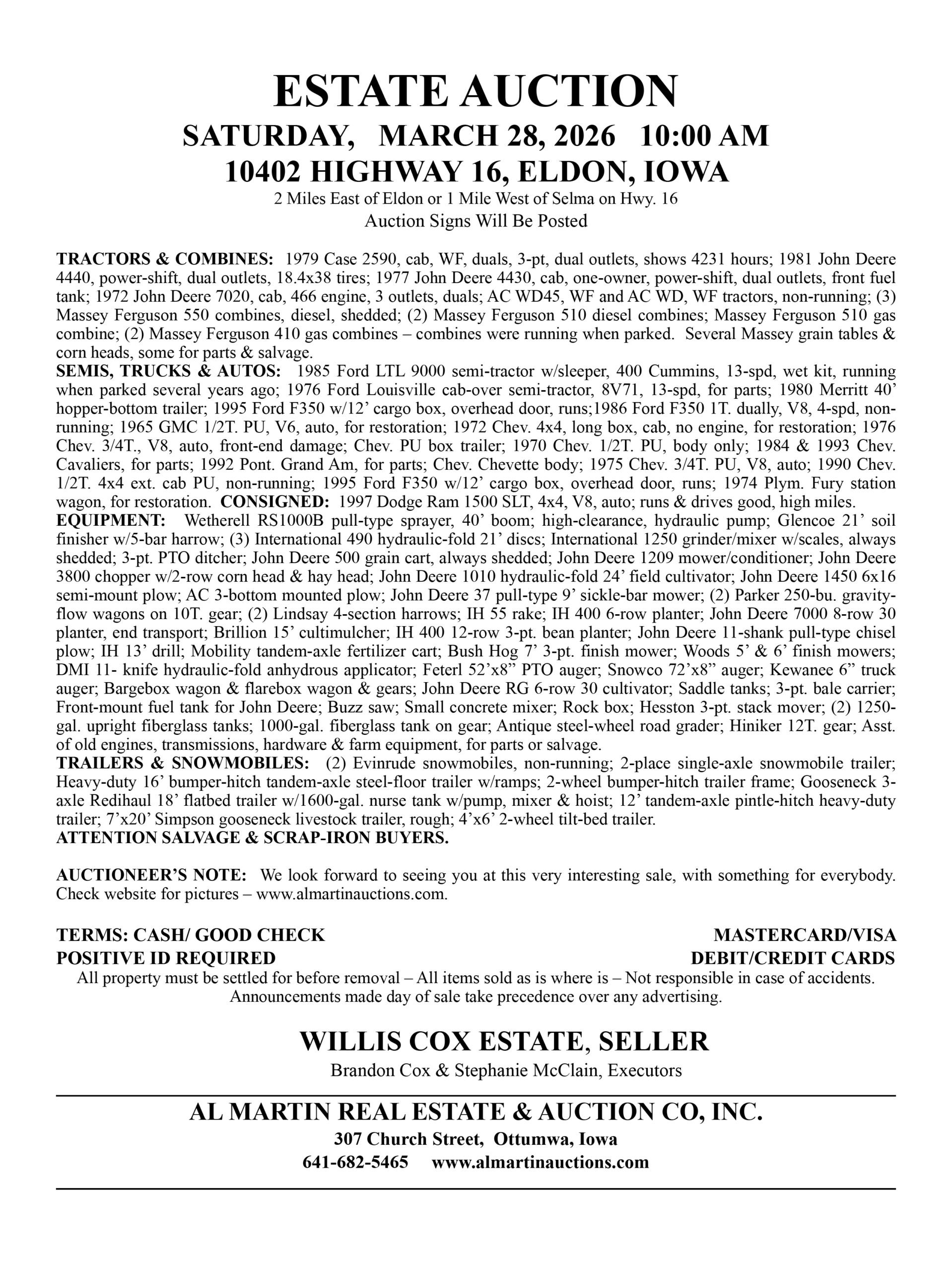 Hendrix Personal Property Auction View Hendrix Personal Property Photos Here Cox Personal Property Auction View Cox Personal Property Photos Here